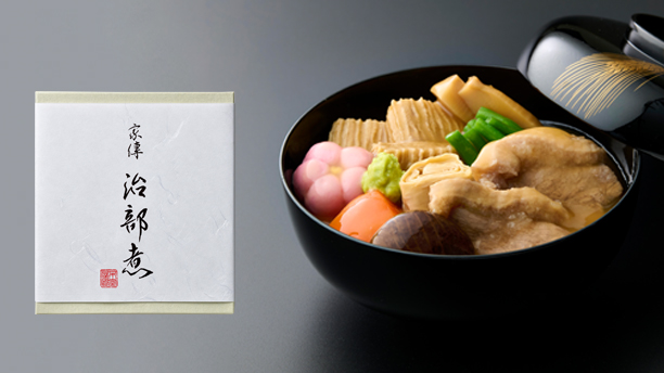 すだれ麩など多彩な具材に、代々伝わる「治部煮のたれ」をあわせていただく、やさしい味わいの治部煮です。