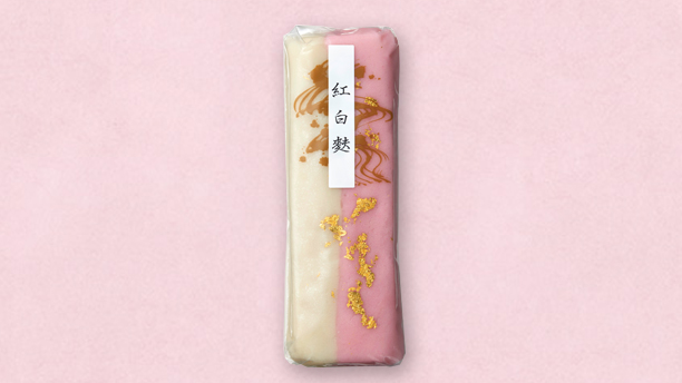紅白の生地に金箔をあしらったおめでたい彩りの加賀生麩。